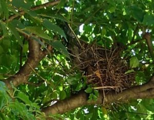 数日後に木を下から見上げるとしっかりした巣ができています!