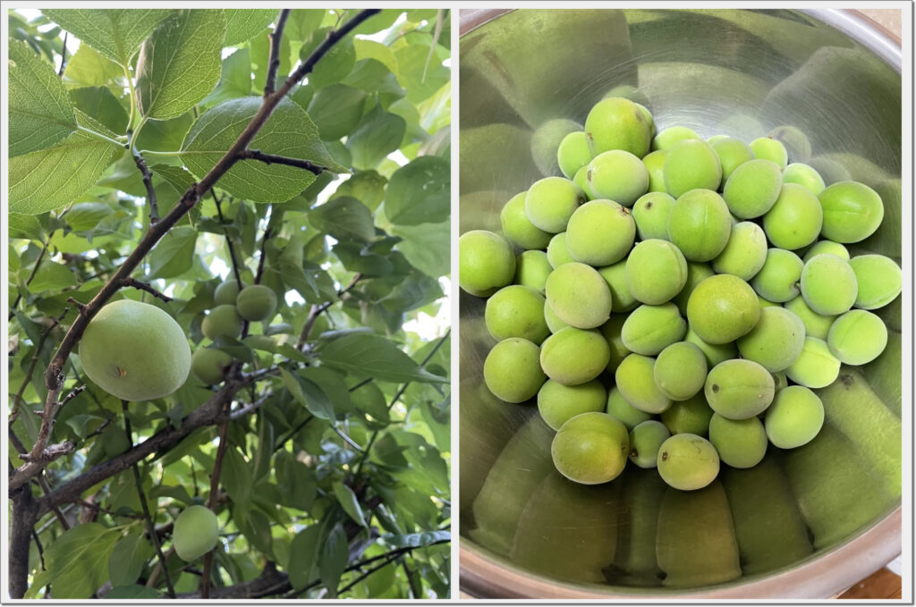 今年は少ないなあと思いつつ、トゲと格闘して木登りをして、収穫した梅は1.2kg。