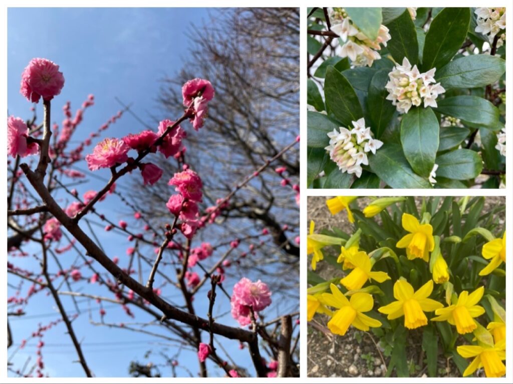 梅が咲き沈丁花や水仙の香りが庭一面に広がります。