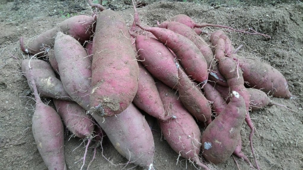 サツマイモの収穫したり、鍬で耕したり、重いものを運んだりしていました。