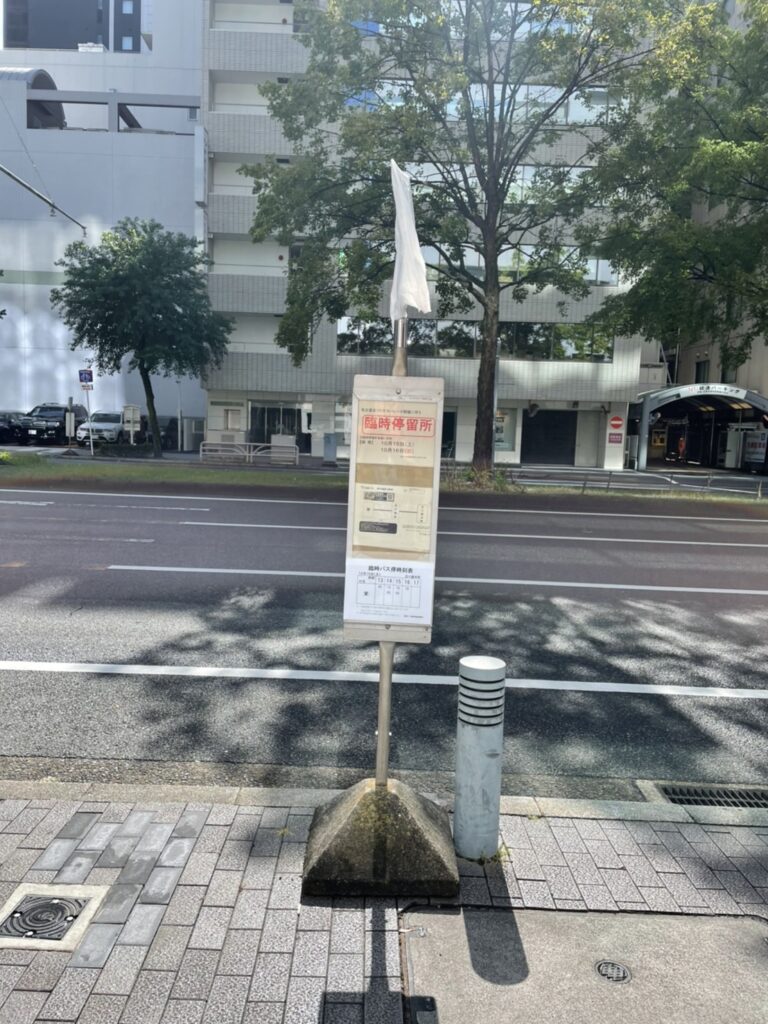 外には臨時のバス停ができていました。