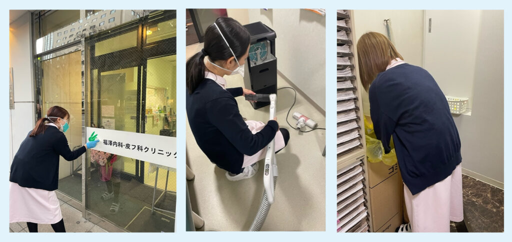 お掃除が下手な私と違い、1・2・4階を手分けしてテキパキお掃除していくスタッフ達!