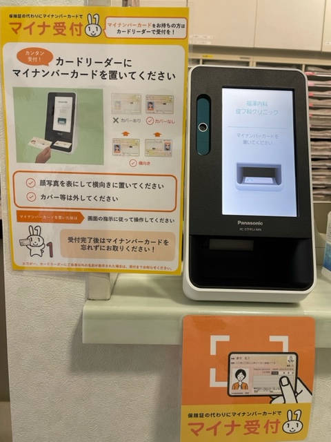 マイナ受付始まりました 公開日: 2023年2月2日更新日: 2023年2月3日カテゴリー: 院長ブログタグ: マイナ受付 名古屋市中区福澤内科・皮フ科クリニックの院長 福澤良彦です。 2023年2月1日から当院でもマイナンバーカードによる受付が可能となりました。 受付をする時に、今まで通りの保険証での確認かマイナンバーカードの提示かを選んで頂きます。 初診、再診ともスタッフにお声がけ頂き、受付を済ませた方から番号札をお渡しします。 診察は番号札順に呼んでいきますので、マイナンバーカードをかざしただけで受付終了とはならない事をご了解ください。 こちらもオススメです 夏季休業のお知らせ 夏季休業のお知らせ 8月13日:通常通り診察 8月14日~17日:休診 8月18日~通常通り診察 13日(木)は診察あり、17日(月)は休診なのでお間違いのないようにお願いいたします。 公開日: 2020年8月13日更新日: 2023年5月24日カテゴリー: 院長ブログタグ: 夏季休業日 インフルエンザ予防接種始まる こんにちは。 名古屋市中区の福澤内科・皮フ科クリニックです。 10月に入り急に寒くなってきましたね。 9月と10月のあまりの気温差に身体がついていかない感じです。 冬の到来を前に、当院では10 […] 公開日: 2023年10月6日更新日: 2023年10月6日カテゴリー: 院長ブログタグ: インフルエンザ予防接種 強い味方 こんにちは。 名古屋市中区の福澤内科・皮フ科クリニックの院長 福澤良彦です。 12月になり、急に寒くなったと思っていたら、インフルエンザA型が大変な流行をしています。 内科外来の患者様には長い待ち時間が発生していまして本 […] 公開日: 2024年12月22日更新日: 2024年12月22日カテゴリー: 院長ブログタグ: BioFire SpotFire, インフルエンザA型, 百日咳 この投稿へのトラックバック トラックバックはありません。 トラックバック URL