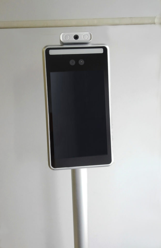 (AIカメラが顔を自動認識して、短時間で表面温度を測定します。)