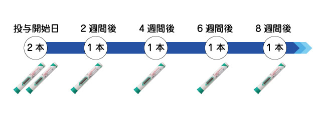 その後2回目からは当面2週間に1回、1本を皮下注射します。