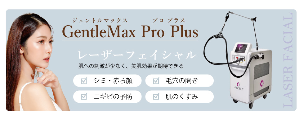 医療脱毛にも使用するレーザー機器 GentleMaxProPlus ジェントルマックスプロプラスを使った美顔治療です。